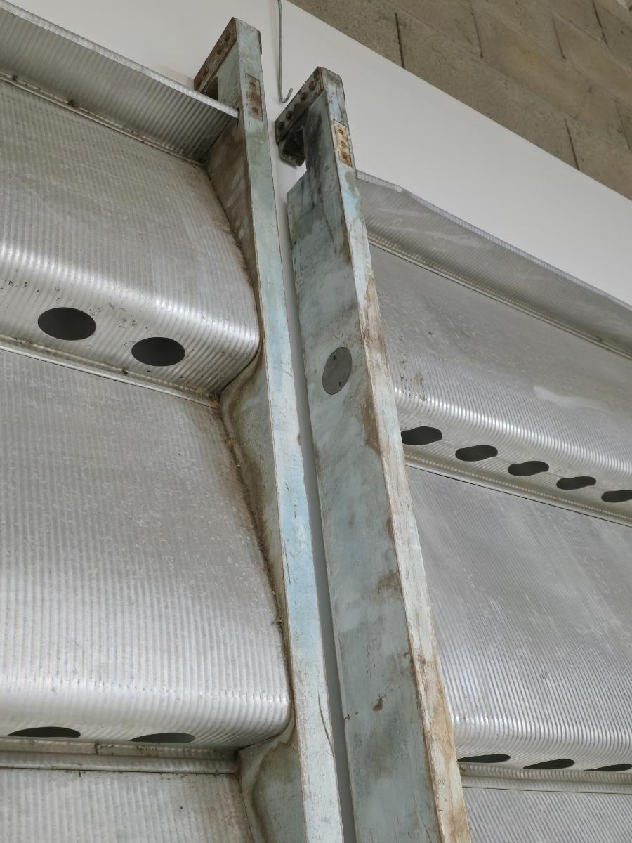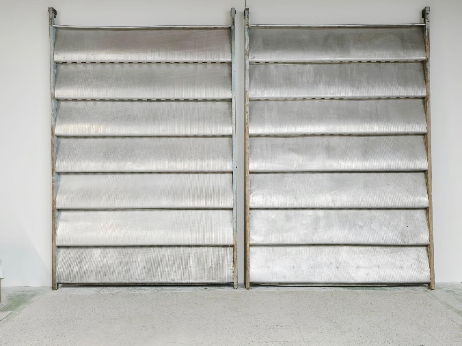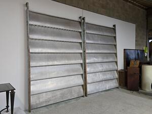 "Wave" panels, created by Jean Prouvé around 1960 for school and administrative buildings in Cameroon. Aluminum and wood Very good original condition. DIMENSIONS: Height: 277 cm Width: 178 cm Depth: 10 cm